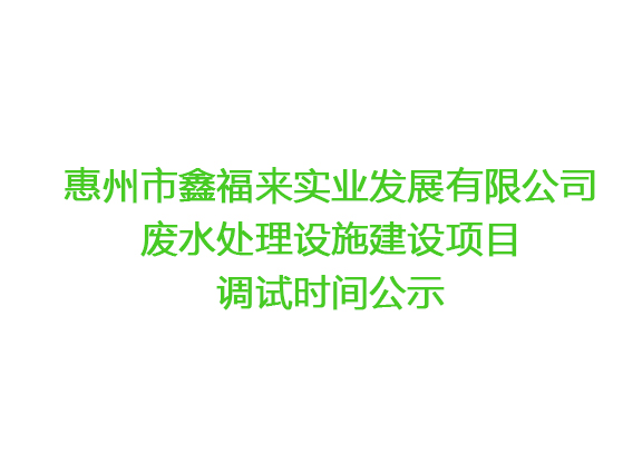 惠州市鑫福來實(shí)業(yè)發(fā)展有限公司 廢水處理設(shè)施建設(shè)項(xiàng)目調(diào)試時(shí)間公示